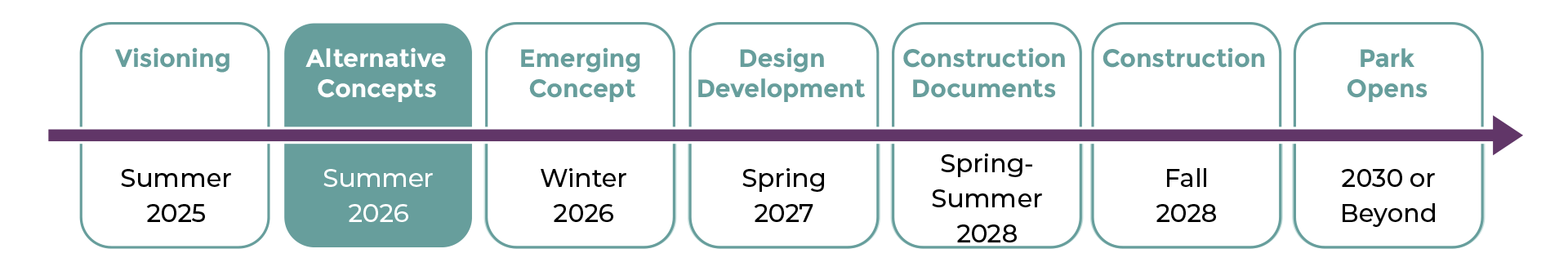 The design team is revising the concepts based on Council direction and will return to the community for engagement and feedback in summer 2026.